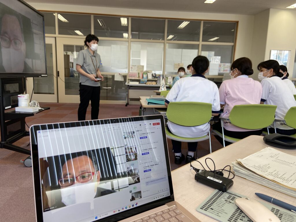 まず取り組まれたのは、【オンライン離島実習(黒島地区)】です。黒島地区の吉田生活支援コーディネーターを講師に迎え、町の現状や医療・介護の状況、地域づくりの実際について学びました。